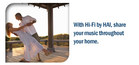 Share all of your music throughout your entire home. HAI’s Hi-Fi 2 by HAI whole house audio system can be controlled wirelessly via remote control, wireless Touchscreen, or cellphone for convenience. (Note that select HAI home control systems also connect with many industry leading audio manufacturers.)