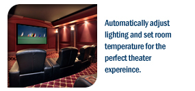 Reduce the number of remotes you need with HAI's OmniTouch 10p portable Touchscreen to control all of your media and home control functions. Use your Touchscreen to select a movie from your library that you'd like to enjoy. Turn up the volume or change MP3 songs from the comfort of your couch. Use the same Touchscreen to adjust temperatures, lighting, and more for an enhanced theater experience. Push one button on the Touchscreen to close the curtains/shades, dim the lights, lower a screen, adjust the temperature, activate the security system, and turn on the appropriate A/V equipment. HAI's Home Theater Extender (PDF) provides IR support for HAI's IP-Based Touchscreens and includes over 300,000 built-in Audio/Video IR codes. Surveillance video can be displayed on the Touchscreen or TV when a guest arrives at the front door. The movie will pause until you're ready, and you can even push a button to let your visitor inside.