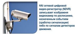 Цифровой Видео-регистратор HAI (NDVR) записывает видео по составленному расписанию, по событиям, либо по возникновении движения в поле камеры.